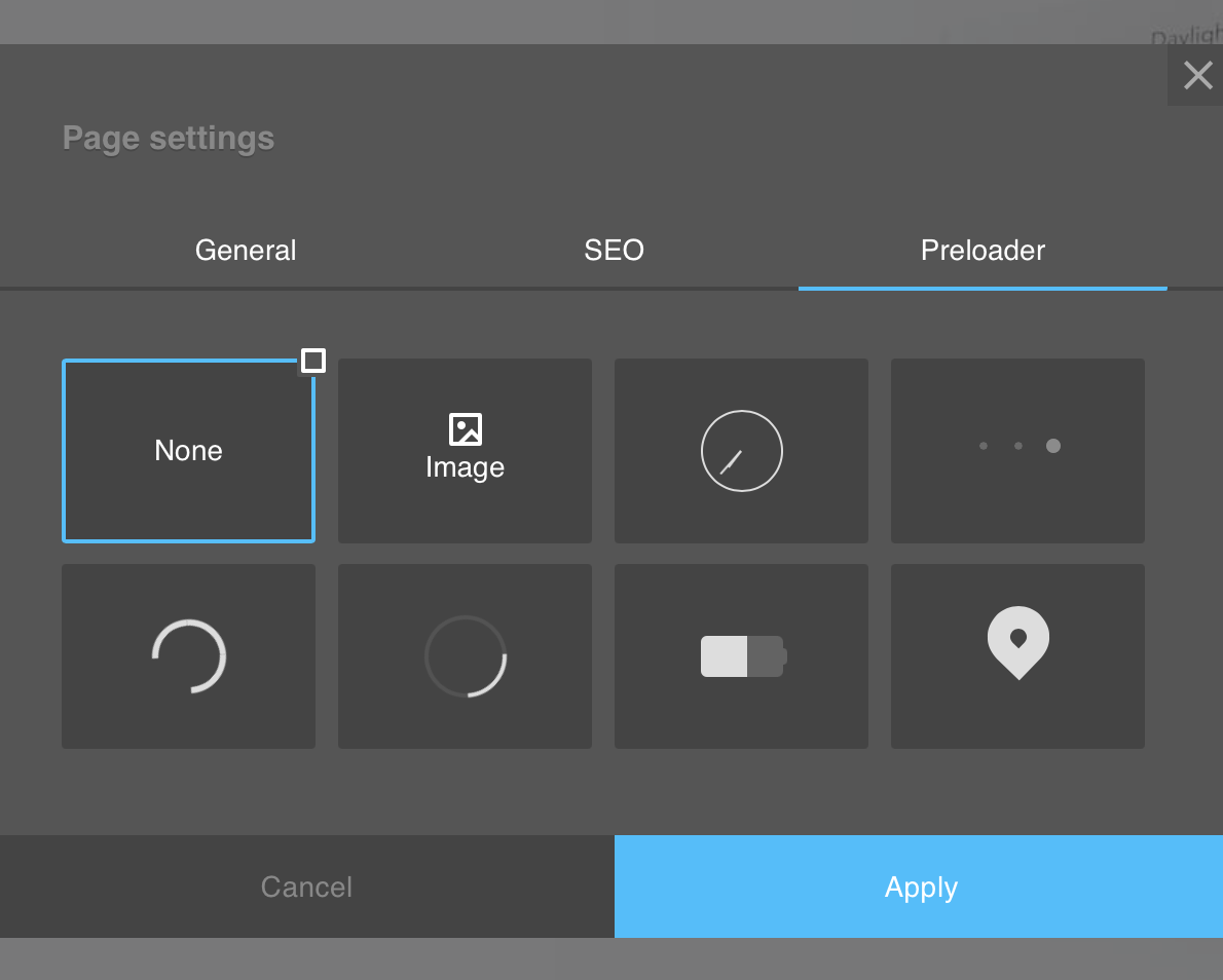 The preloader page shows the list of animations that should show when the page is being loaded.